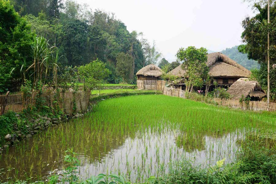 Nell'aria si respira il profumo delle giovani piante di riso, caratteristico delle verdi risaie. Se lo visitate durante la stagione del raccolto, vedrete una tonalità dorata che ricopre l'intero villaggio. Indipendentemente dalla stagione, il villaggio di Thon Tha del popolo Tay vi accoglie sempre con la bellezza unica di ogni stagione.